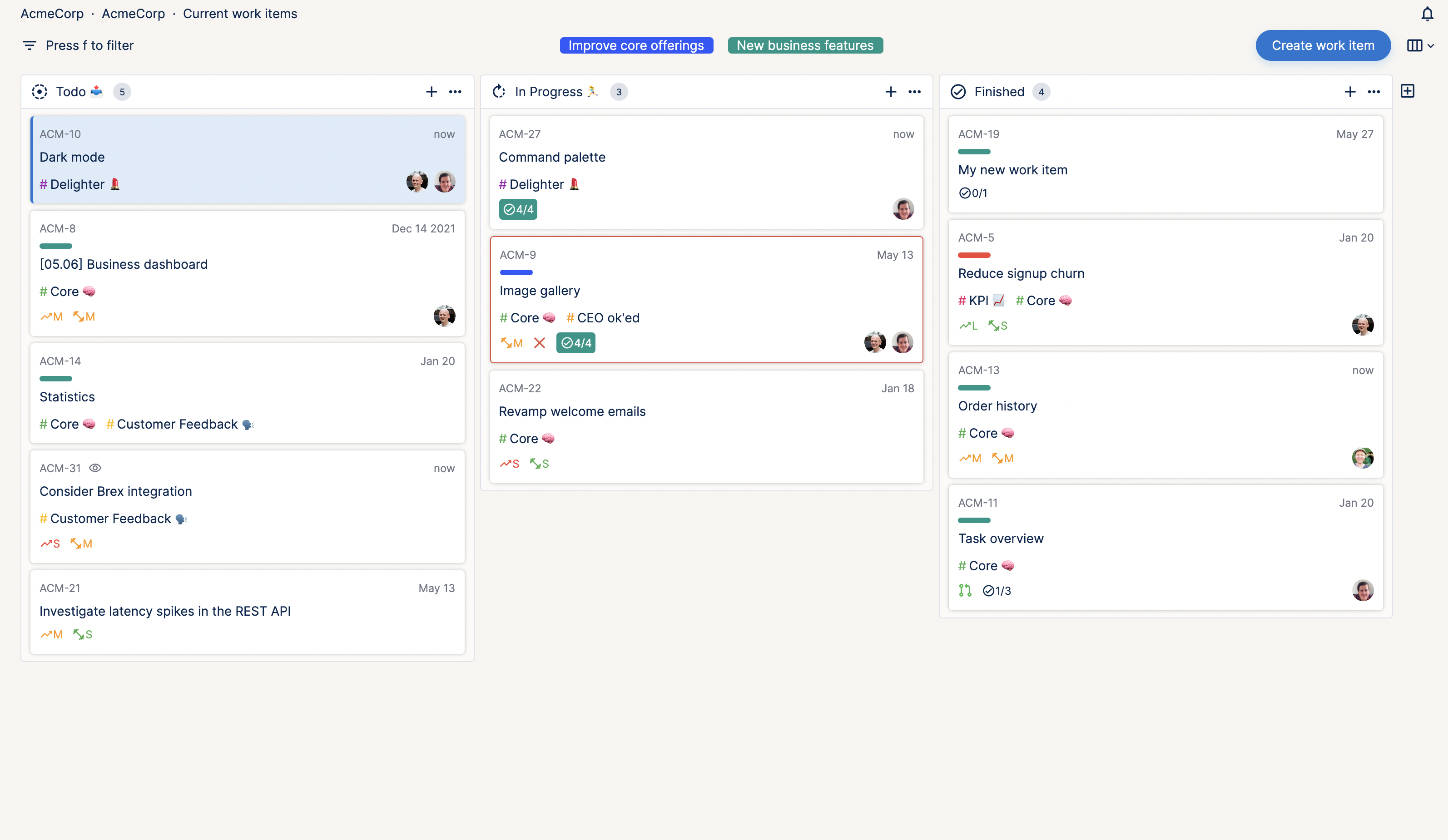 Kitemaker opens up new possibilities for designers to work closely with product managers and engineers. The best way to use Kitemaker in a cross-functional team is to not use separate boards for designer tasks but to track the teams’ deliverables in the work items and add tasks in the description. Instead of initiatives starting with only a few people when the requirements come in, everyone can participate from the start using our work items. And, as a designer, you can share qualitative and quantitative insights and ensure that you are part of initiatives early on.