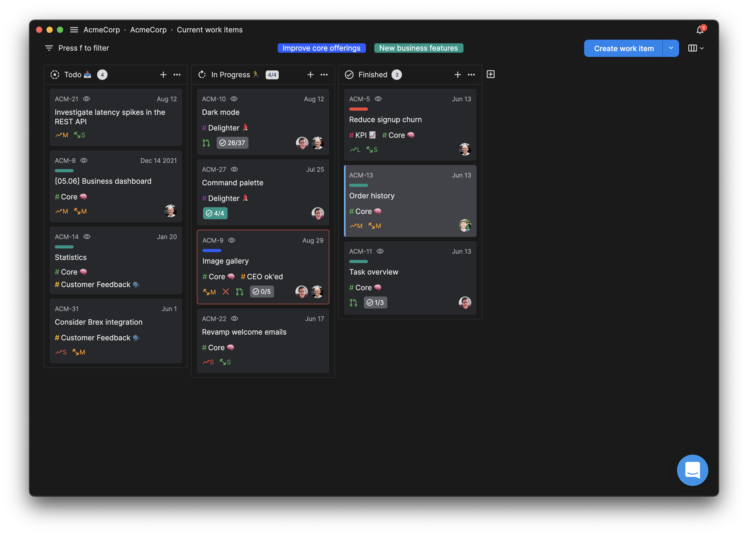 Take for example the board view in Kitemaker: